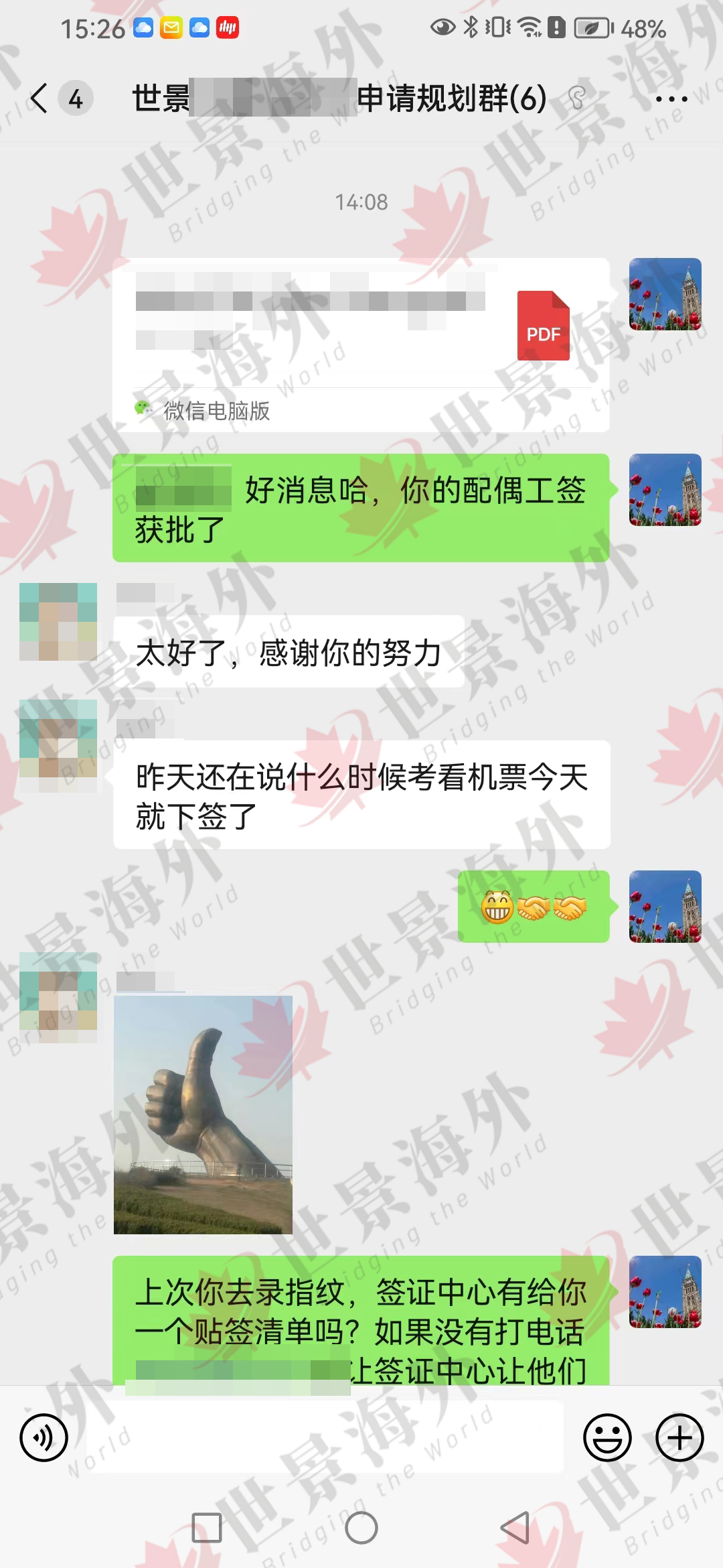 热烈祝贺世景海外的客户G先生顺利获批配偶工签!